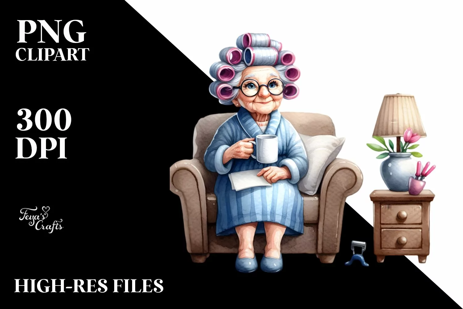 Old Lady Hair Curlers Couch Mug Sublimation Clipart example image 1