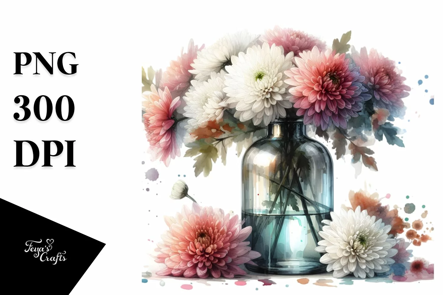 Watercolor Sticker Summer Flower Abstract Png Chrysanthemum Sublimation Whitebackground Glassbottle