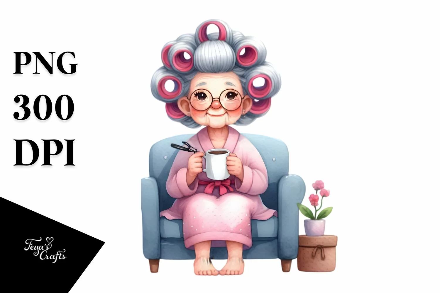 Watercolor Sticker Summer Flower Png Mug Couch Sublimation Oldlady Haircurlers