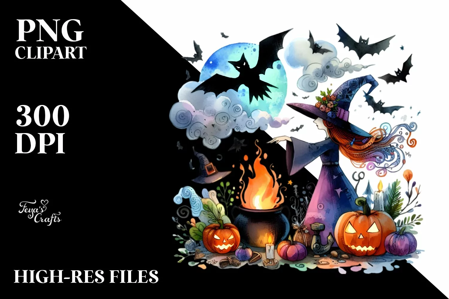 Similar Design Products to Witch Halloween Watercolor Clipart