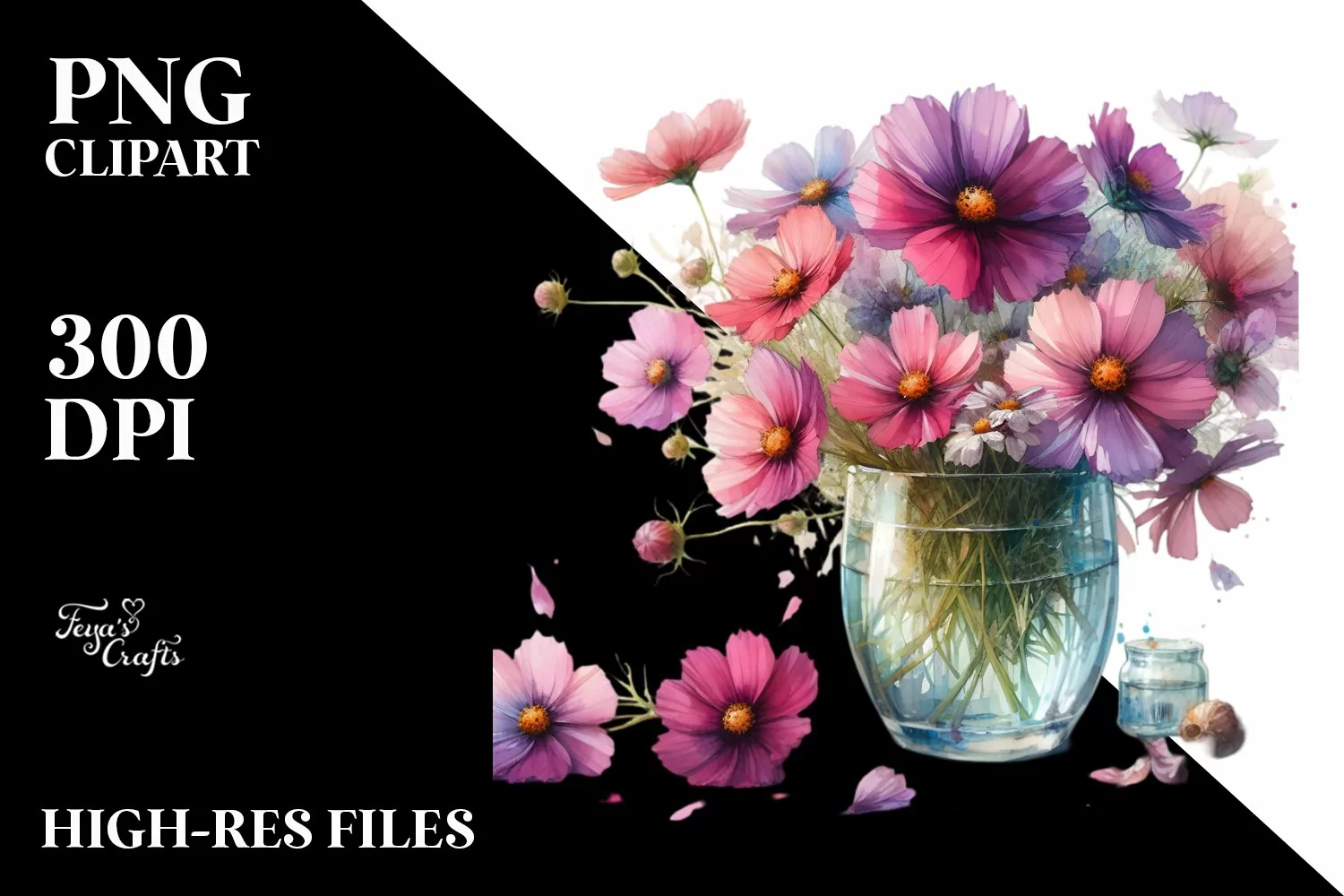 Similar Design Products to Watercolor Filled with Large Cosmos | Clipart