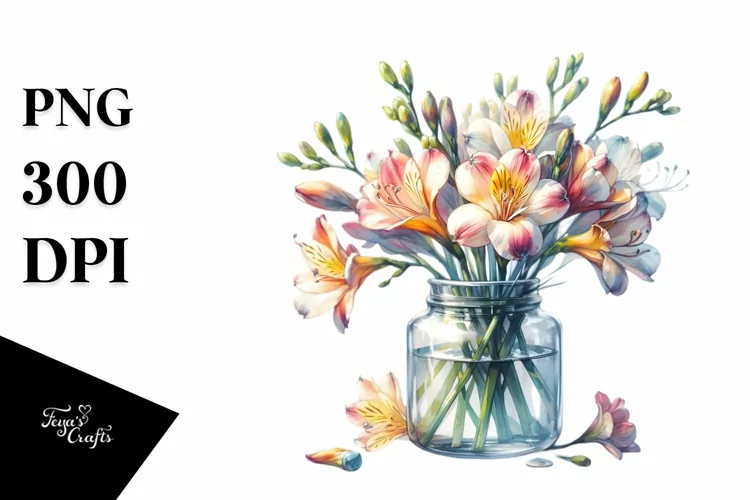 Similar Design Products to Watercolor Jar Filled with Large Freesia | Clipart