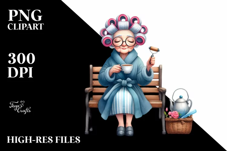 Similar Design Products to Watercolor Old Lady Sitting on Bench | Sublimation Clipart