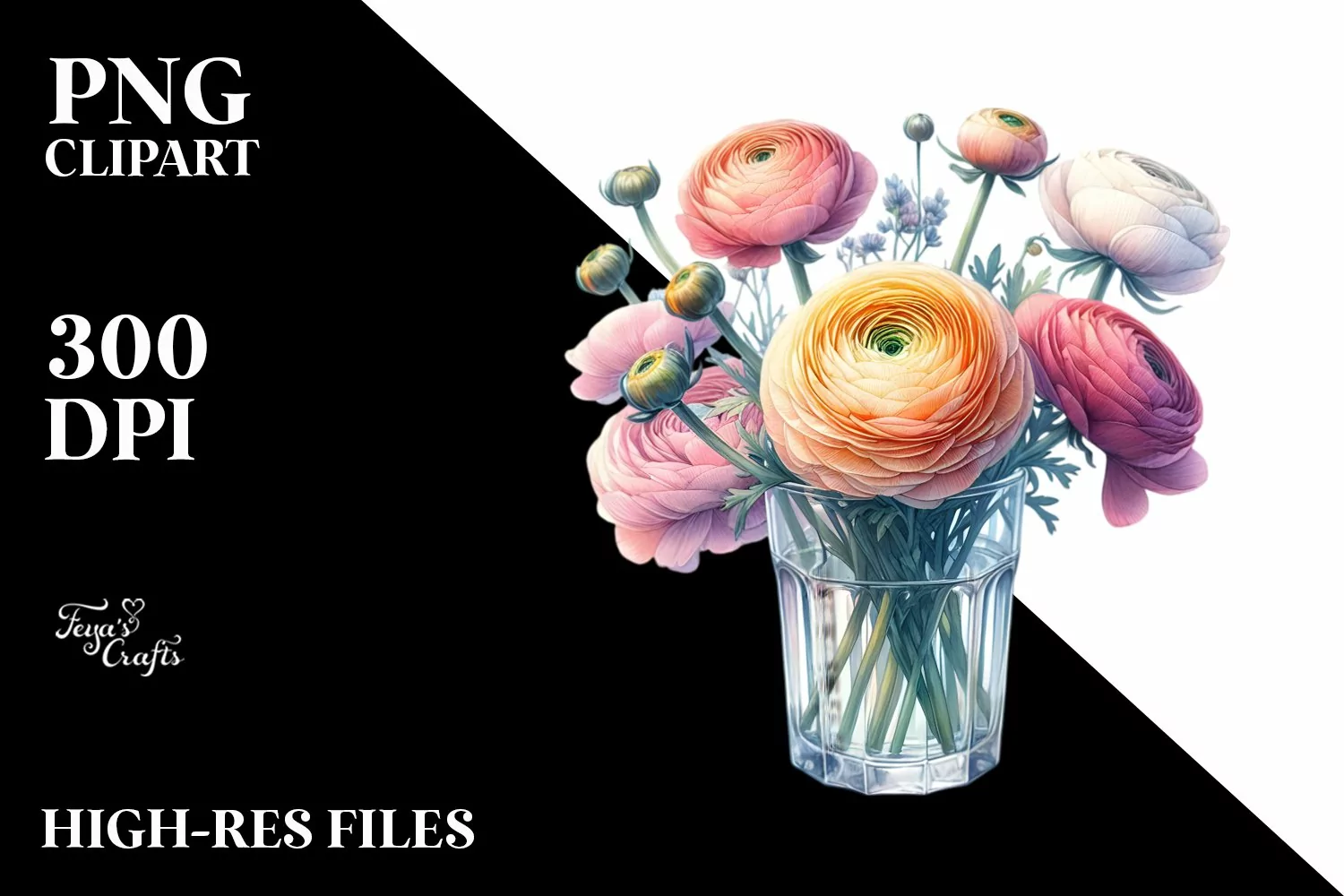 Colorful Ranunculus | Clipart example image 1