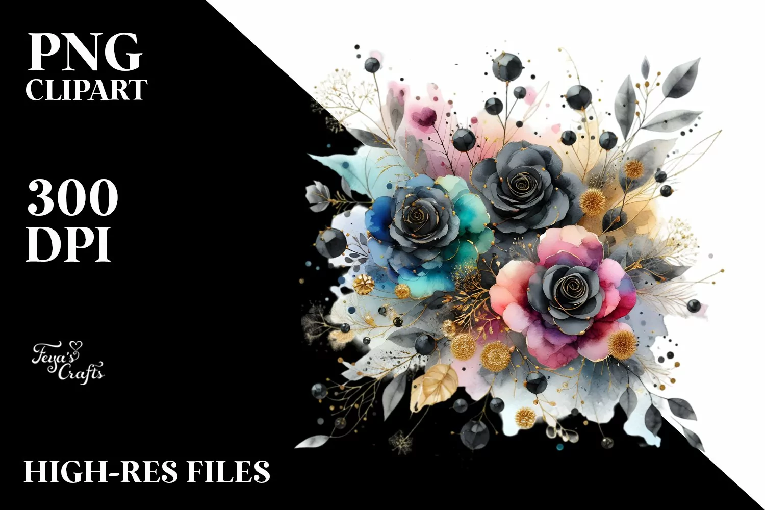 Colorful Black Roses Gold | Clipart example image 1