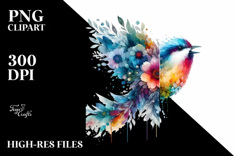 Similar Design Products to Vibrant Bird Half Flowers Abstract Watercollor | Clipart
