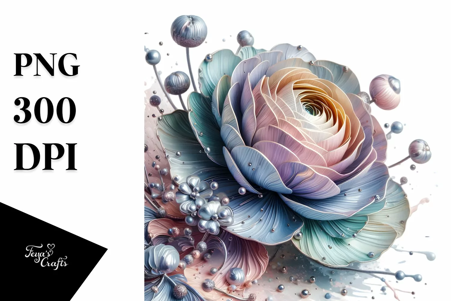 Abstract Pastel Glossy Ranunculus with Inserts | Clipart