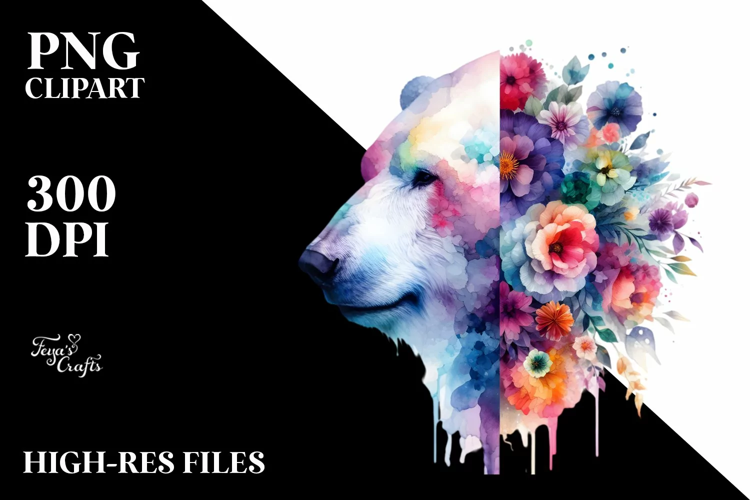 Half Flowers Polar Bear | Vibrant Artistic Watercolor