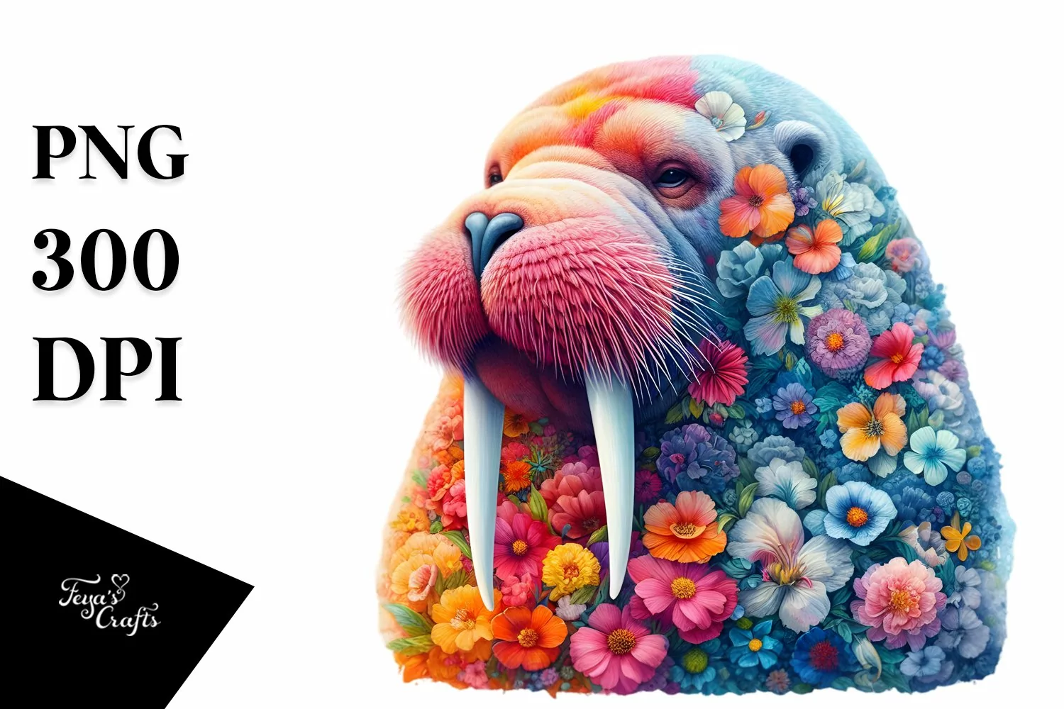 Similar Design Products to Artistic Vibrant Walrus with Flowers Clipart