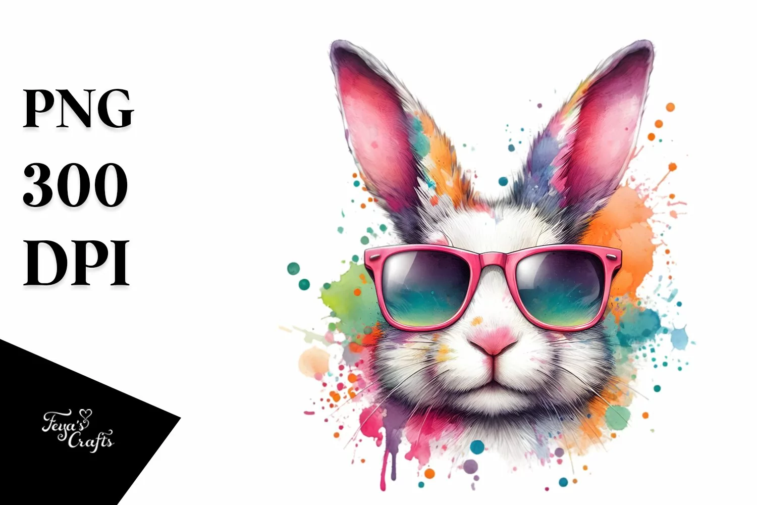Colorful Rabbit with Sunglasses | Sublimation | Clipart