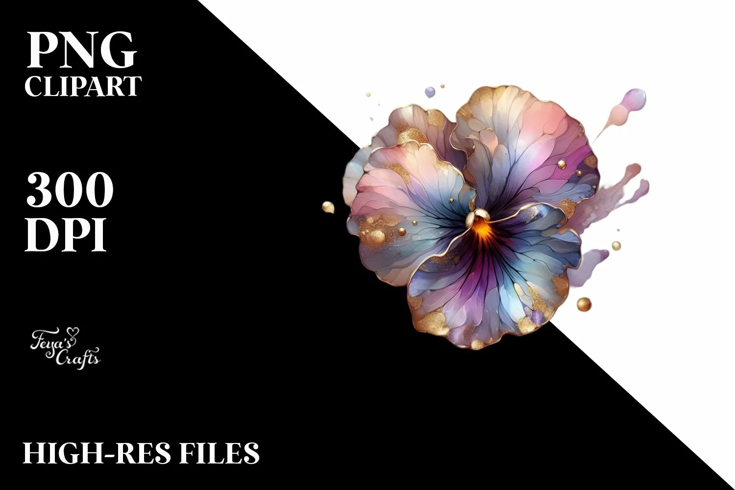 Shiny Abstract Pansy with Golden Insertions | Clipart example image 1