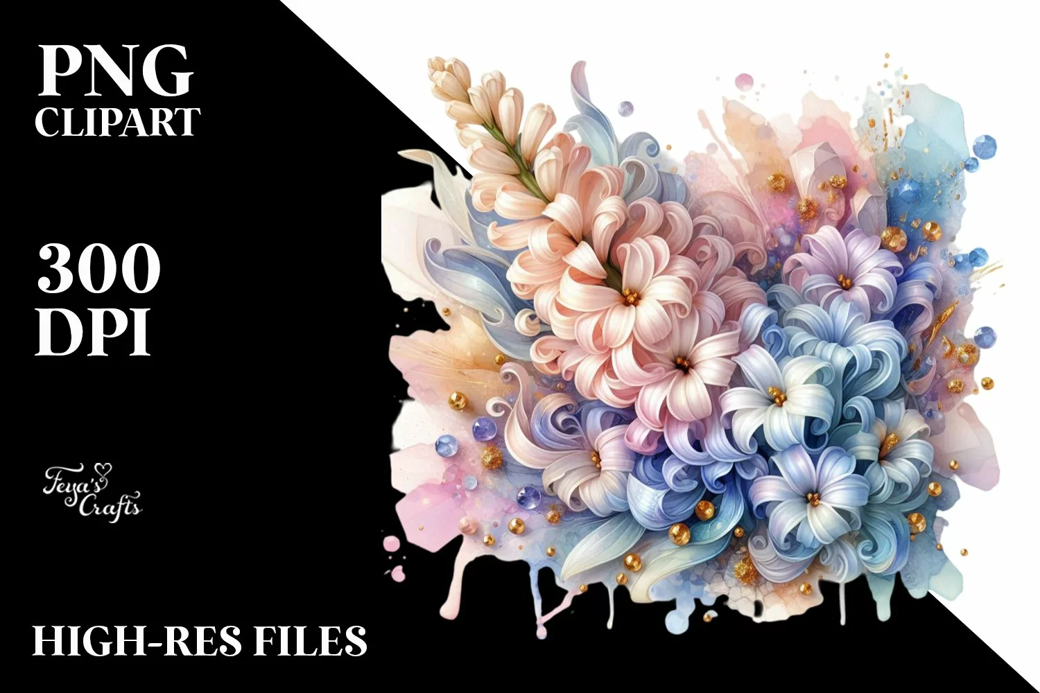 Similar Design Products to Shiny Pastel Hyacinth Golden Splash Clipart