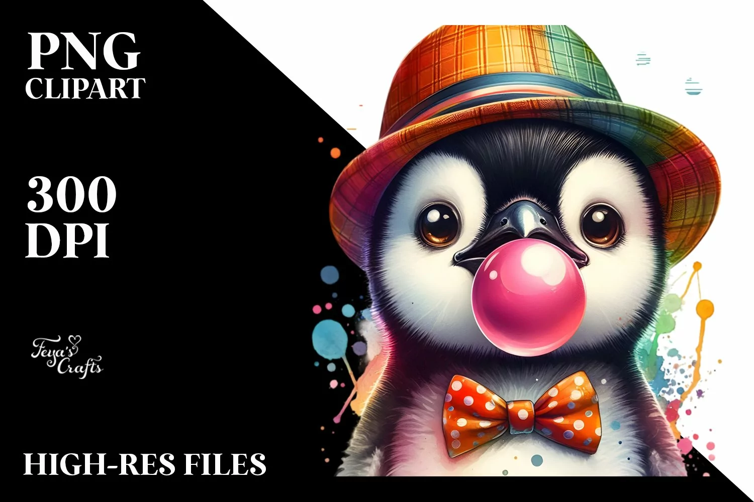 Quirky Colorful Penguin with Hat | Clipart example image 1