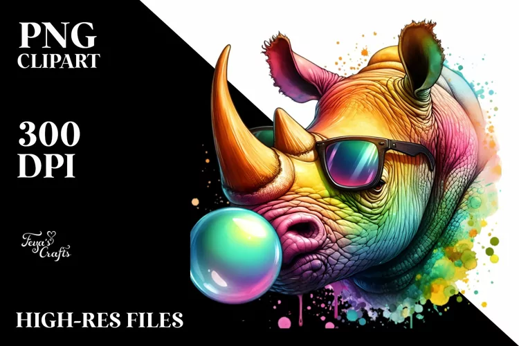 Similar Design Products to Quirky Colorful Watercolor Rhino | Clipart