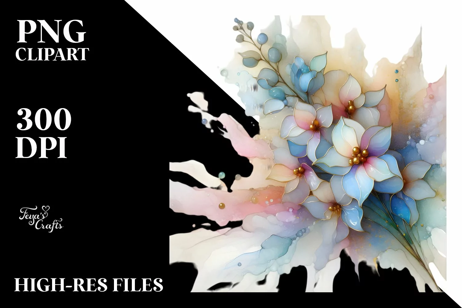 Watercolor Sticker Summer Flower Golden Png Pastel Glass Sublimation Delphinium