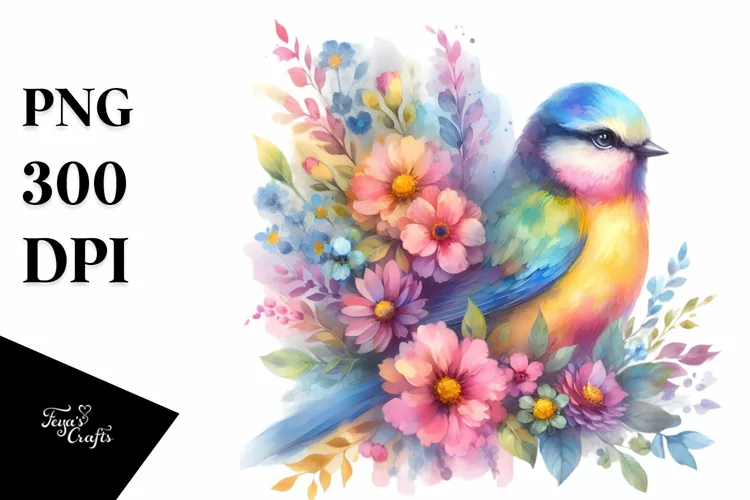 Sublimation, Clipart, Pastel Watercolor Vibrant Bird