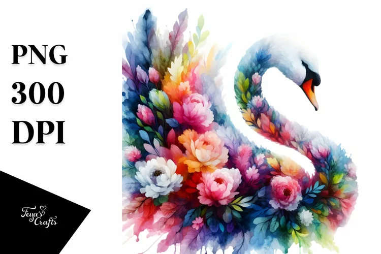Abstract Swan, Flowers | Sublimation | Clipart
