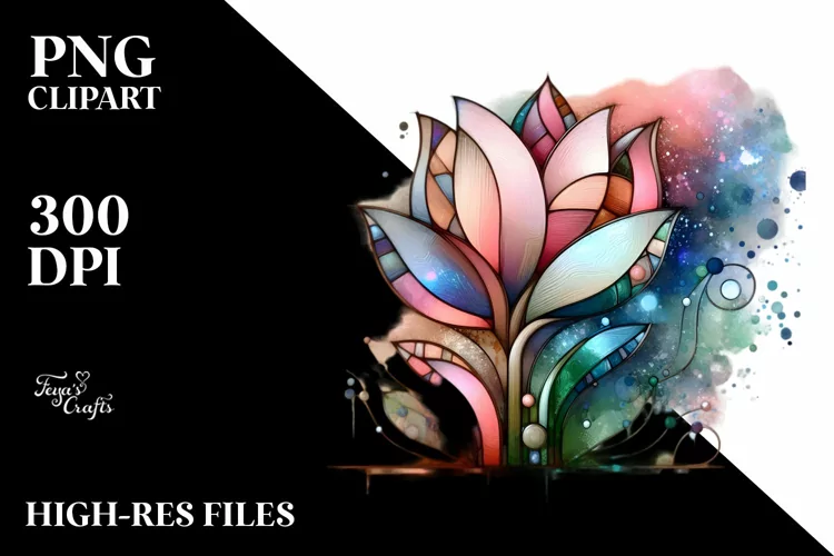 Wooden Abstract Pastel Glass Tulip Metalic Whitebackground Watercolorsplash Stainedglass Insertions