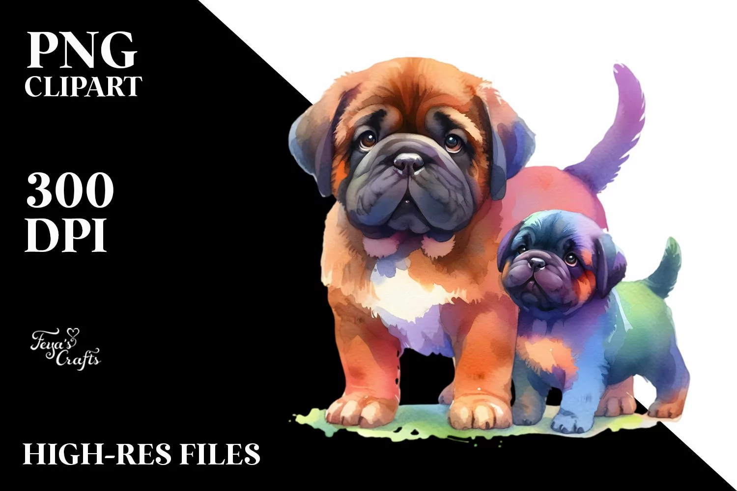 Similar Design Products to Mastiff, Cute Vibrant Mastiff | Watercolor Clipart