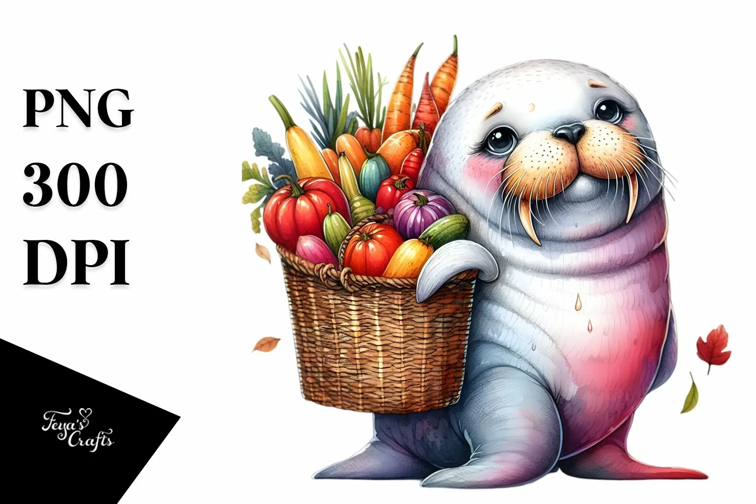 Baby Walrus Autumn Vegetables | Sublimation | Clipart example image 1
