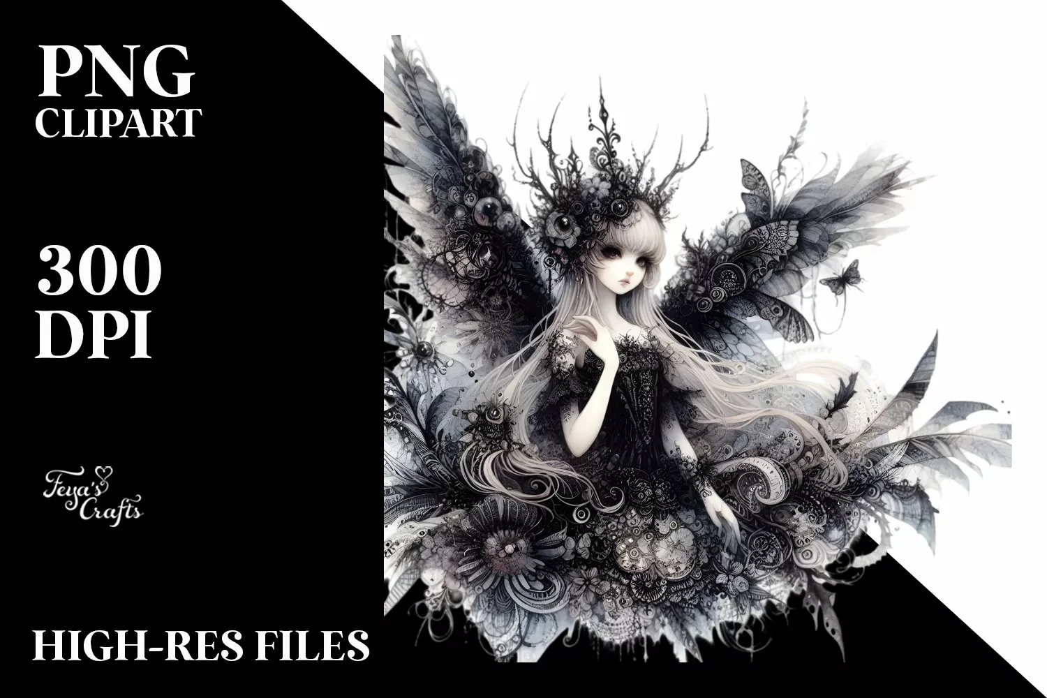 a Detailed Gothic Fairy Watercolor Clipart example image 1