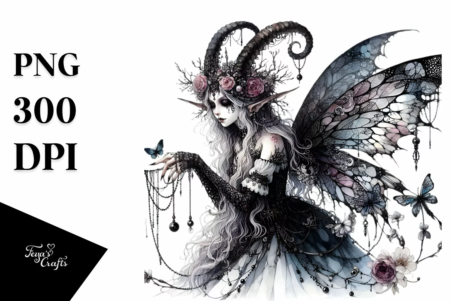 Detailed Watercolor Gothic Fairy | Clipart example image 1