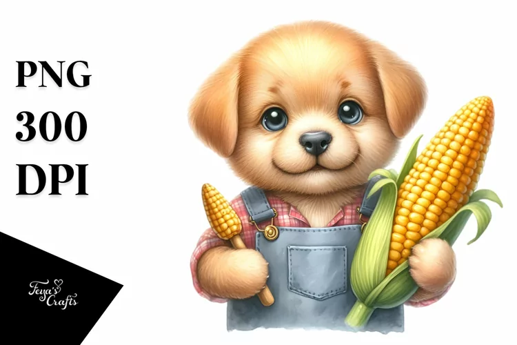 Similar Design Products to Baby Puppy Holding Corncob, Watercolor Style, Clipart