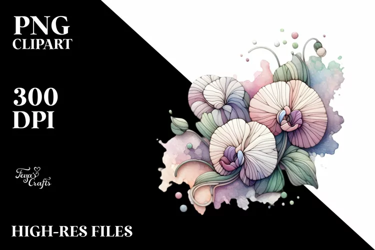 Sweet Pea Stained Watercolor Splash | Sublimation | Clipart example image 1