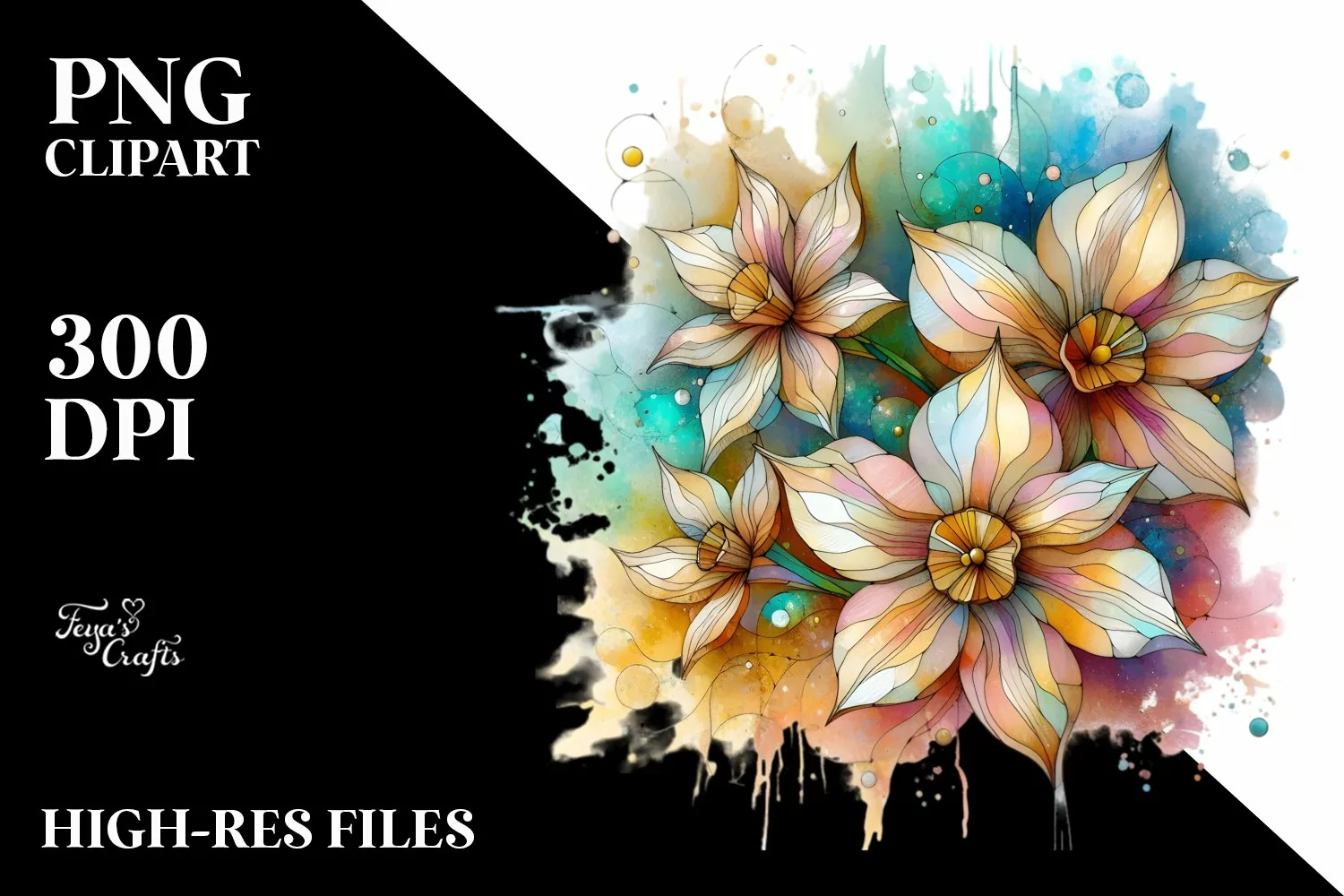 Stained Narcissus Watercolor Splash | Sublimation | Clipart