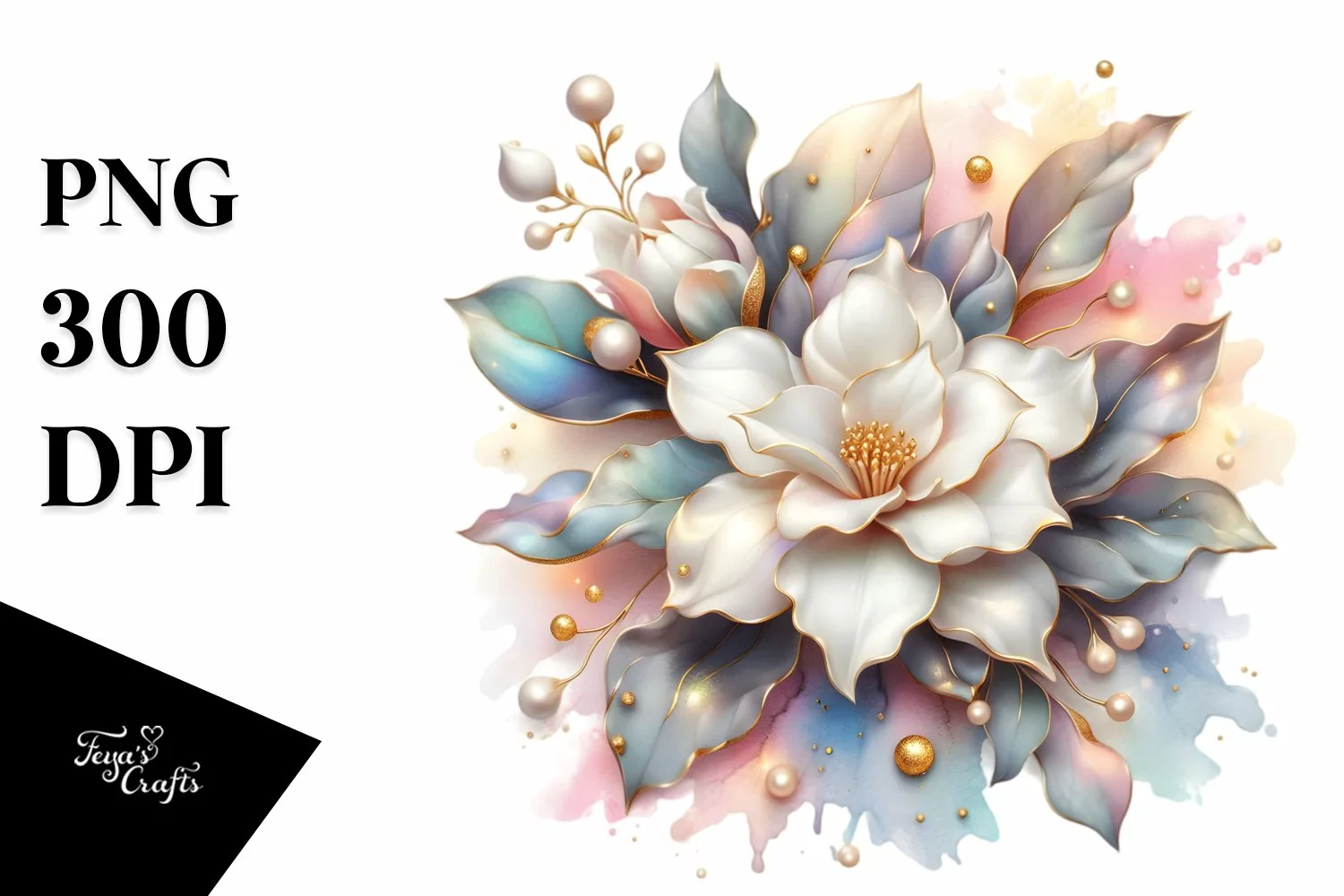Shiny Gardenia Watercolor Splash | Sublimation | Clipart