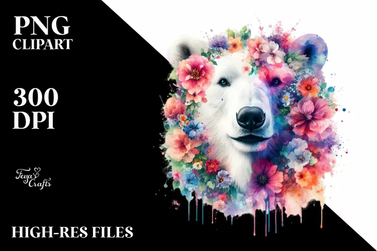 Similar Design Products to Vibrant Artistic Watercolor Polar Bear Clipart