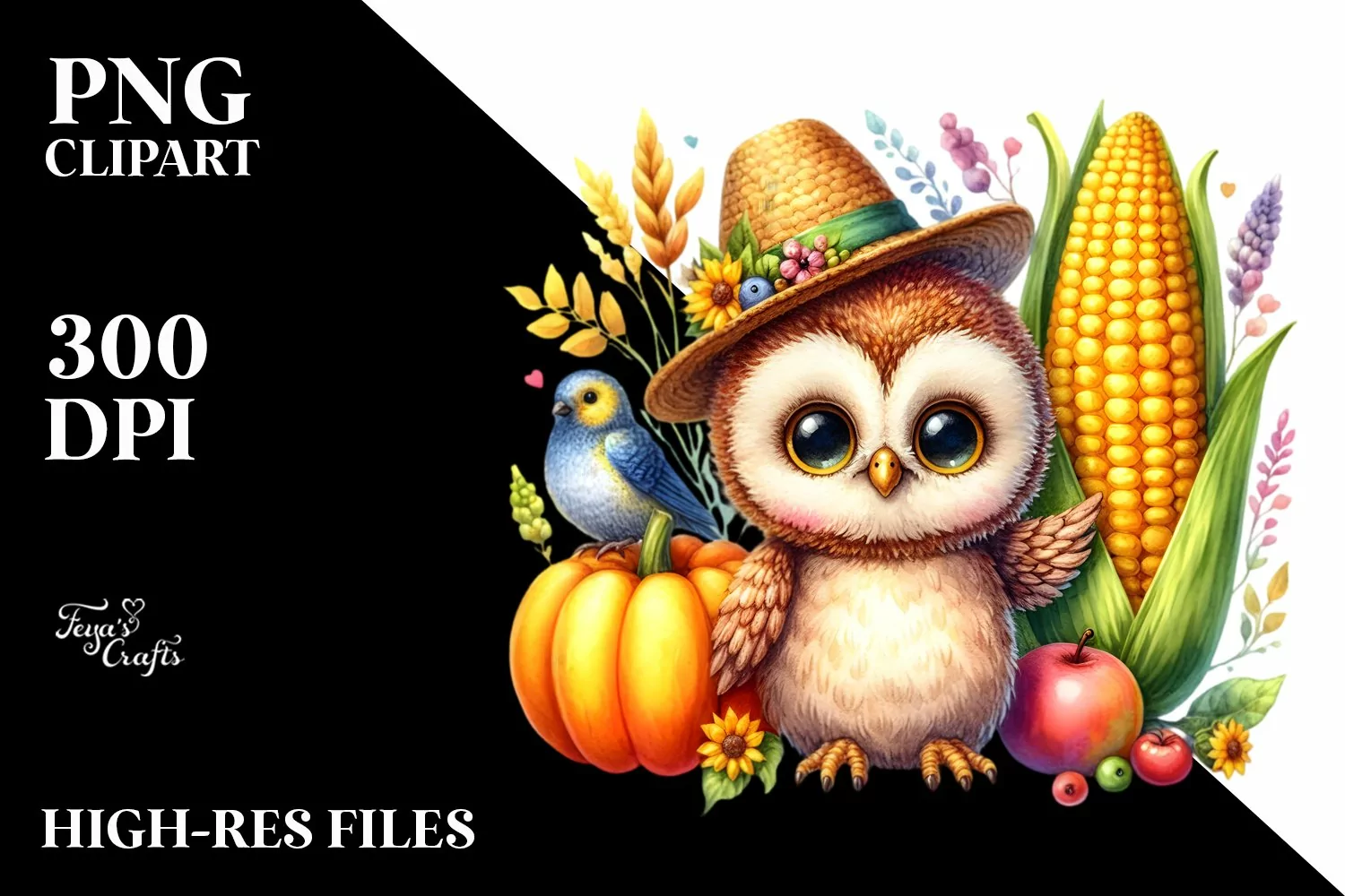 Baby Owl Corn Fun Sublimation Clipart example image 1