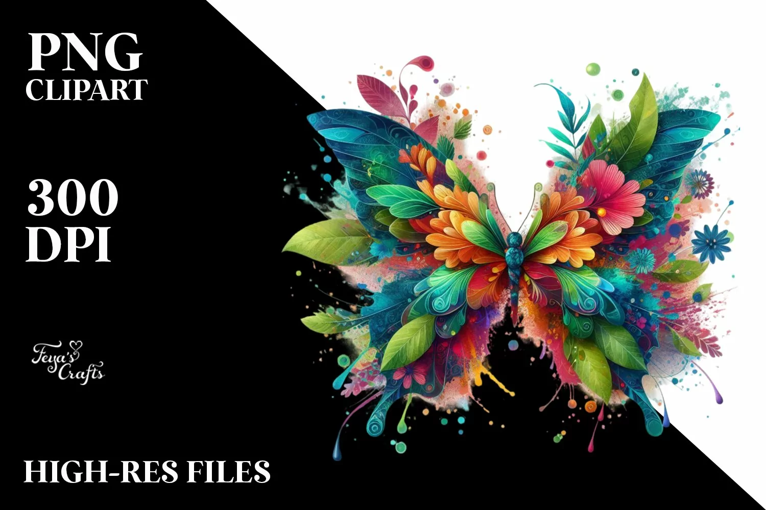 Abstract Vibrant Butterfly with Flowers PNG example image 1