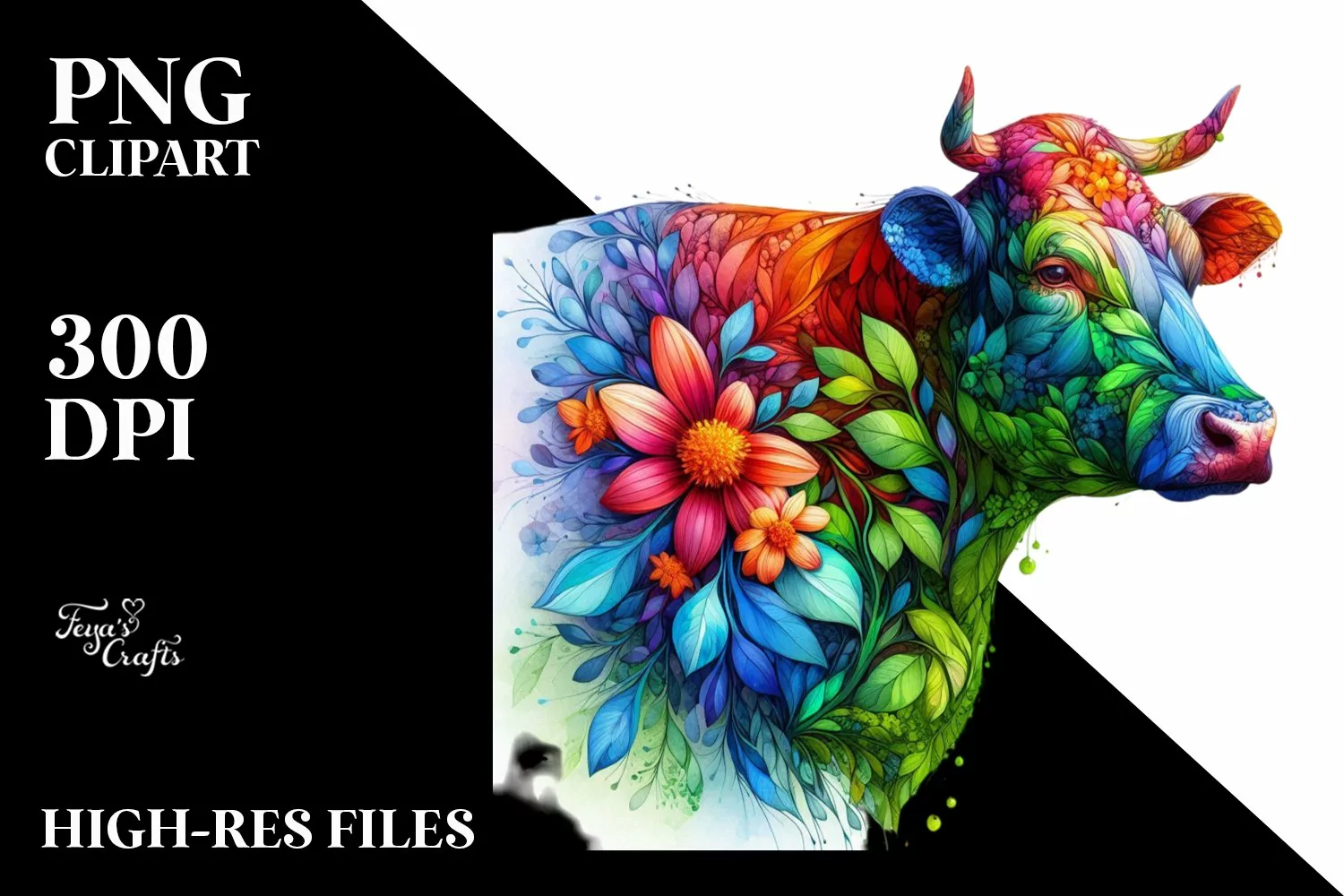 Vibrant Abstract Flower Cow PNG example image 1