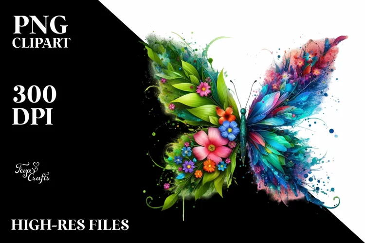 Similar Design Products to Vibrant Butterfly with Flowers, PNG