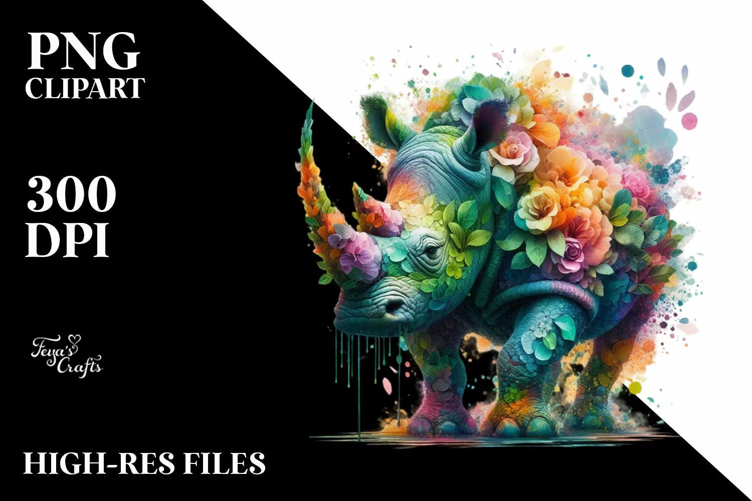 Vibrant Rhino with Flowers PNG