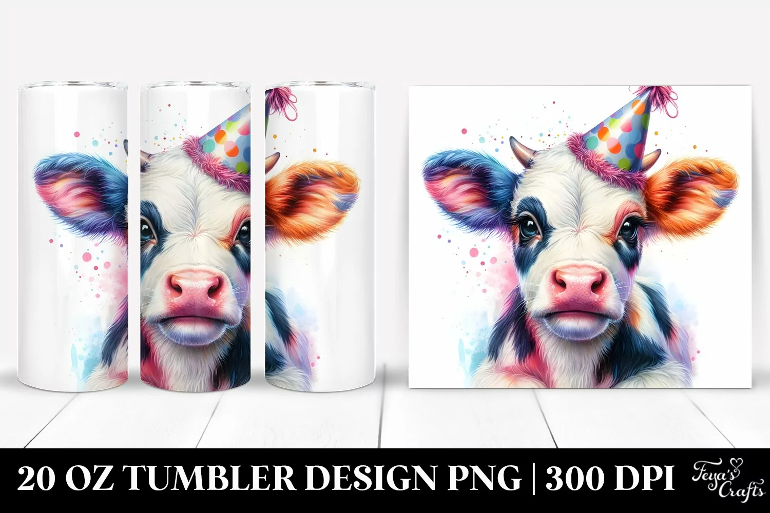 Watercolor Party Baby Colorful Clipart Png Pastel Cow Sublimation Tumbler