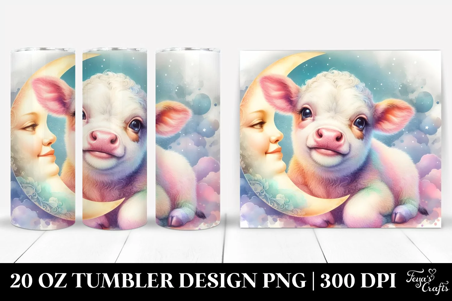 Similar Design Products to Pastel Baby Cow Smiling Moon 20 oz Tumbler Design