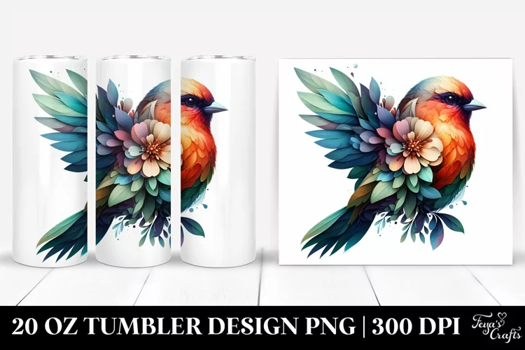 Watercolor Abstract Clipart Bird Vibrant Png Sublimation Tumbler Plantleaves 3dlookingflowers