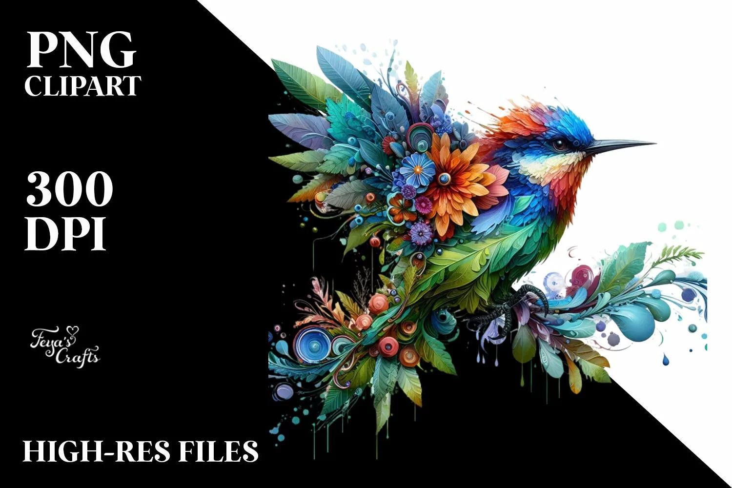 Colorful Bird made of Flowers PNG example image 1