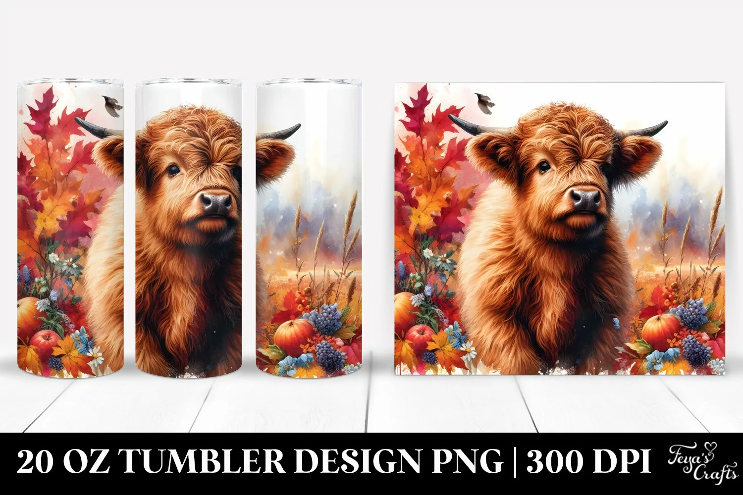 Watercolor Clipart Autumn Png Scene Cow Highland Sublimation Tumbler Jeffkoons