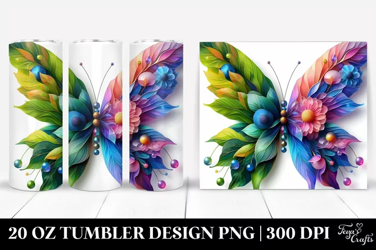 Watercolor Abstract Clipart Butterfly Png Glass Sublimation Tumbler Plantleaves 3dflowers