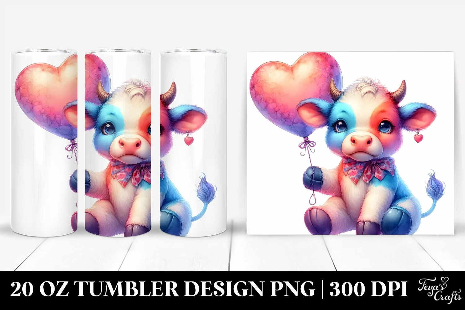 Colorful Baby Cow Heart Balloon. 20 Oz Tumbler Design example image 1