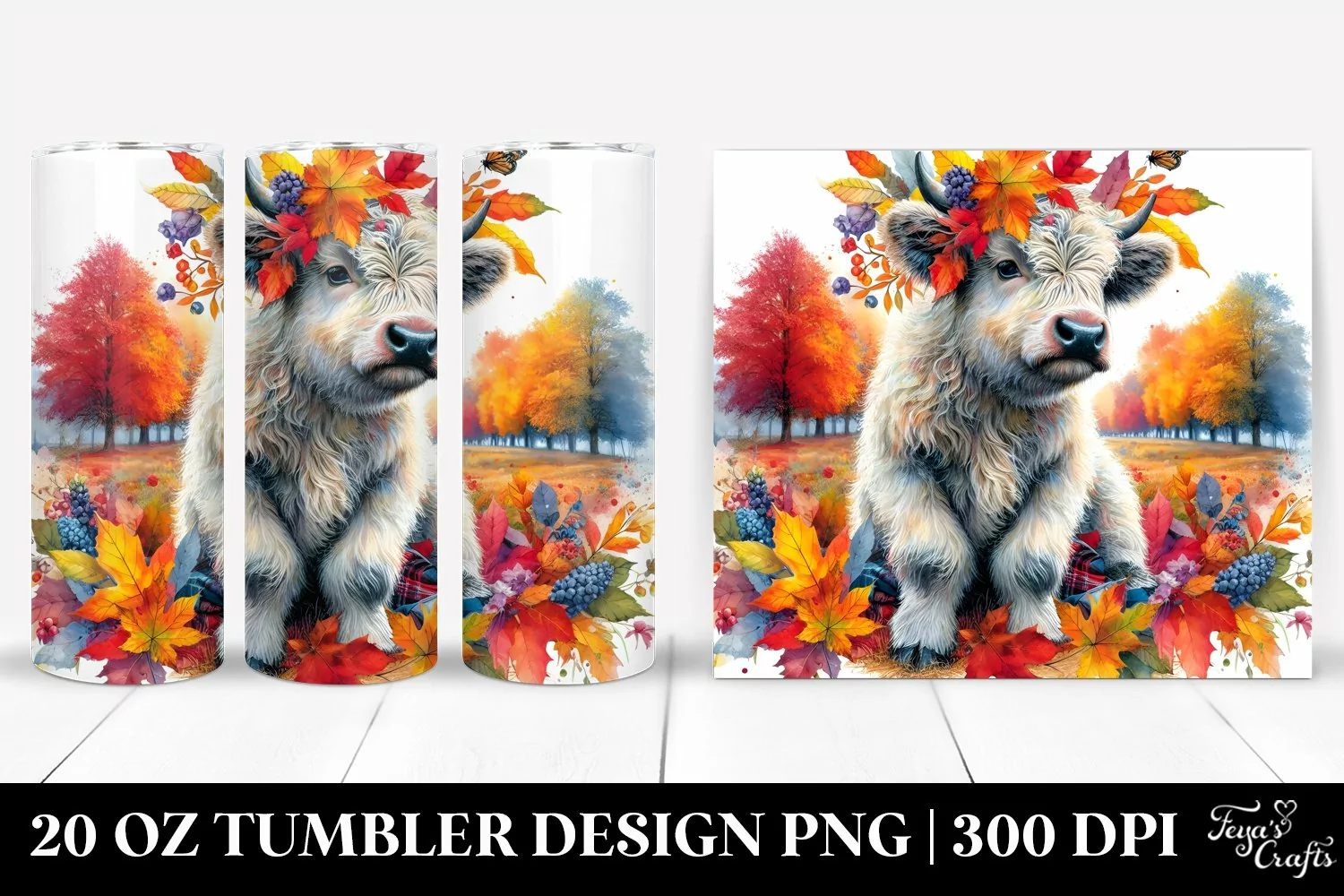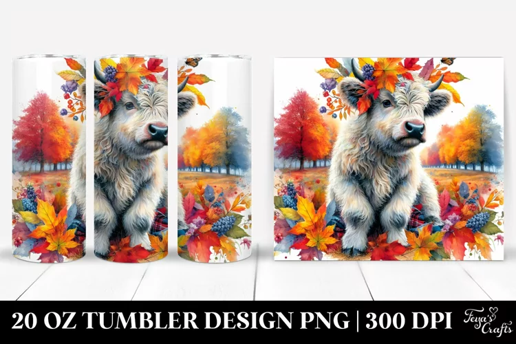 Similar Design Products to Colorful Watercolor Baby Highland Cow. 20 Oz Tumbler Design