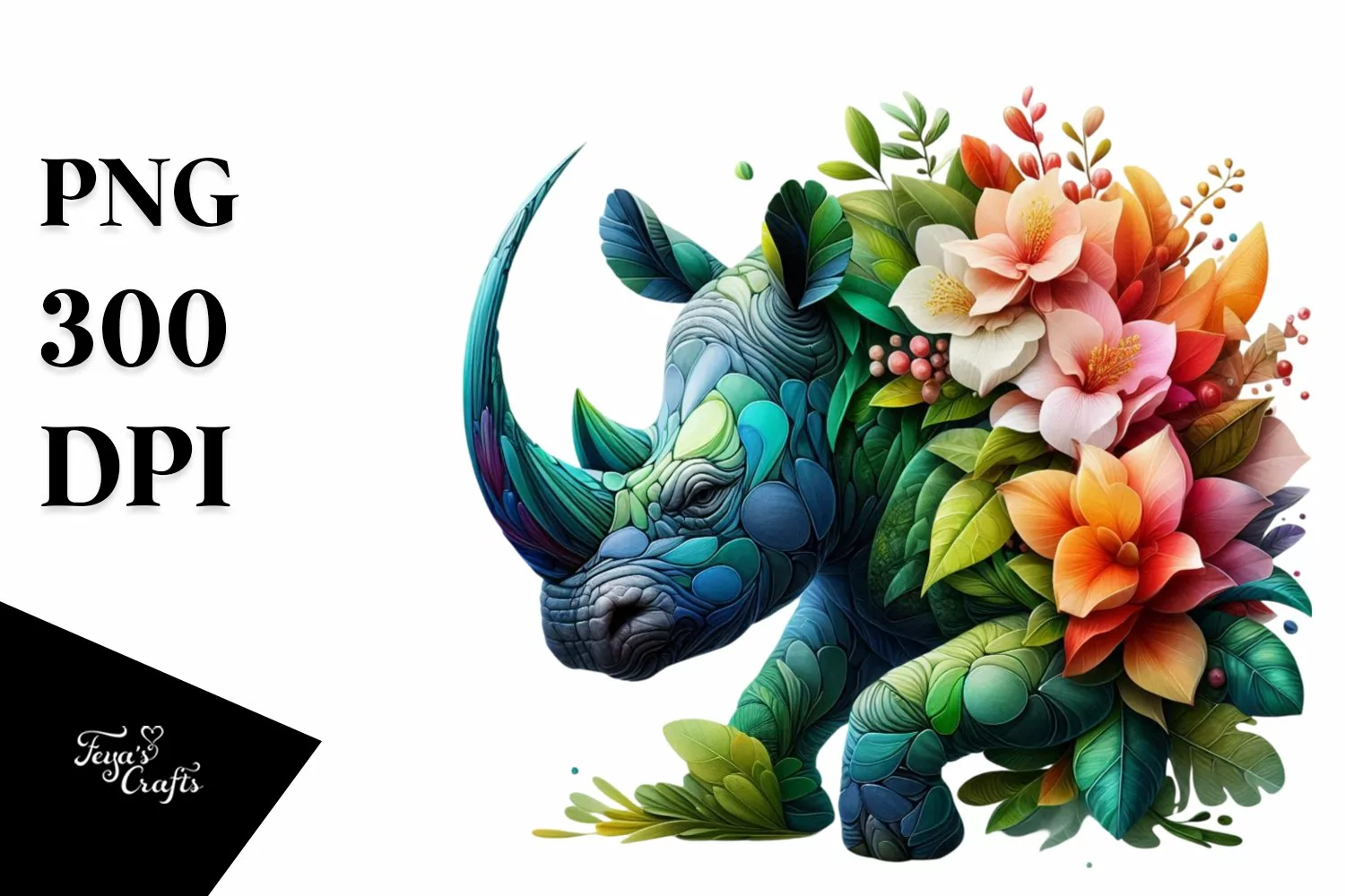 Rhino with 3D Flowers, Transparent PNG