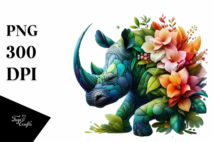 Similar Design Products to Rhino with 3D Flowers, Transparent PNG