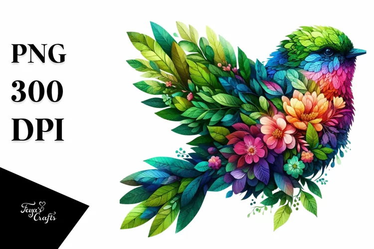 Similar Design Products to Vibrant Watercolor Bird with Flowers, PNG