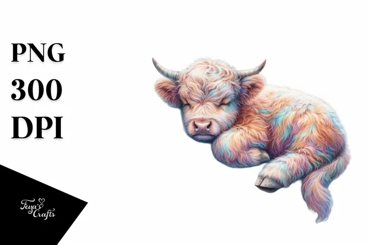 Colorful Baby Highland Cow with Scottish Highland PNG
