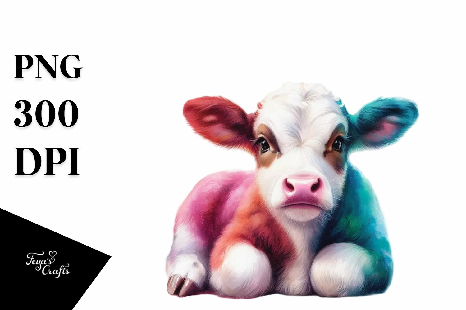 Watercolor Sticker Summer Baby Colorful Flower Png Cow Sublimation Jeffkoonsstyle