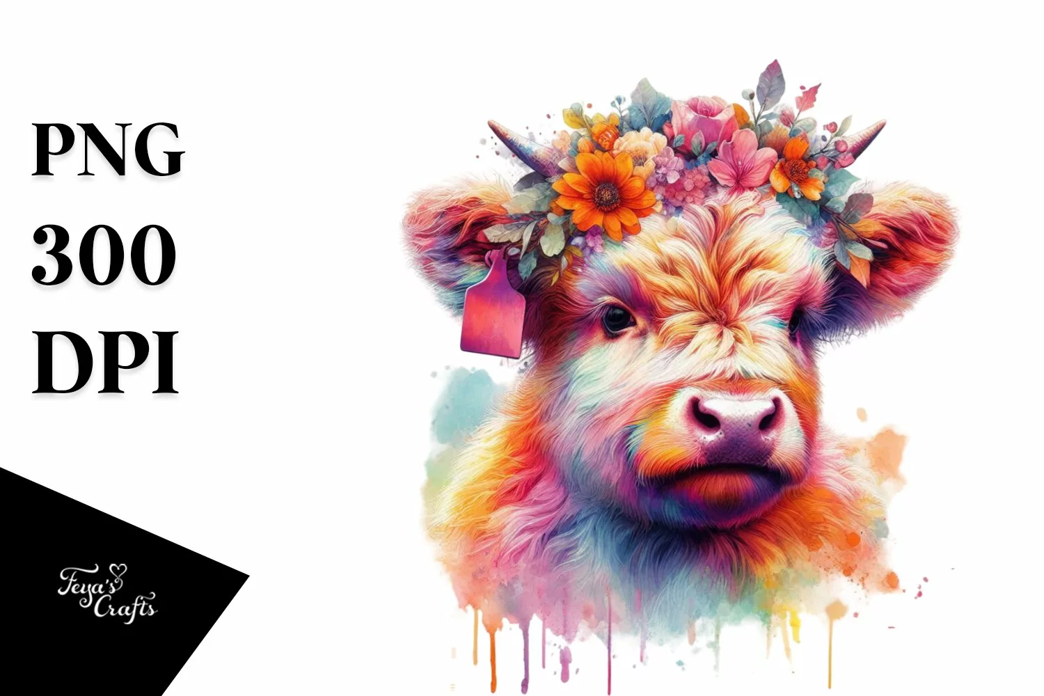 Similar Design Products to Colorful Highland Cow in Studio PNG